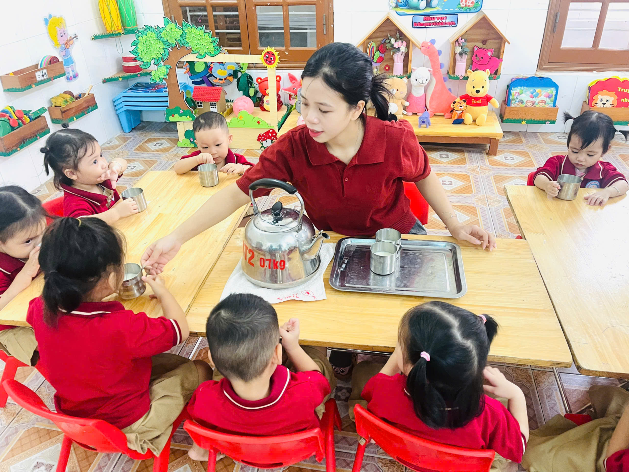 Các bé lớp Nhà trẻ 2 rất vui khi giờ uống sữa đến rồi.