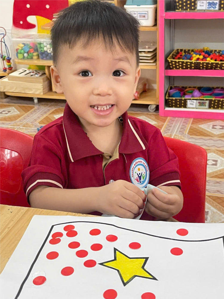 Qua hoạt động, các con không chỉ rèn luyện sự khéo léo, khả năng tập trung mà còn thêm yêu quê hương, đất nước khi tự tay dán trang trí những lá cờ đỏ sao vàng – biểu tượng thiêng liêng của Tổ quốc. Hoạt động diễn ra trong niềm vui hồn nhiên, ánh mắt rạng rỡ và niềm tự hào của các bé. Hoạt động không chỉ giúp các bé thêm yêu quê hương, đất nước mà còn hướng tới giáo dục tinh thần tự hào dân tộc, biết trân trọng thành quả của 80 năm dựng xây và phát triển đất nước Việt Nam.