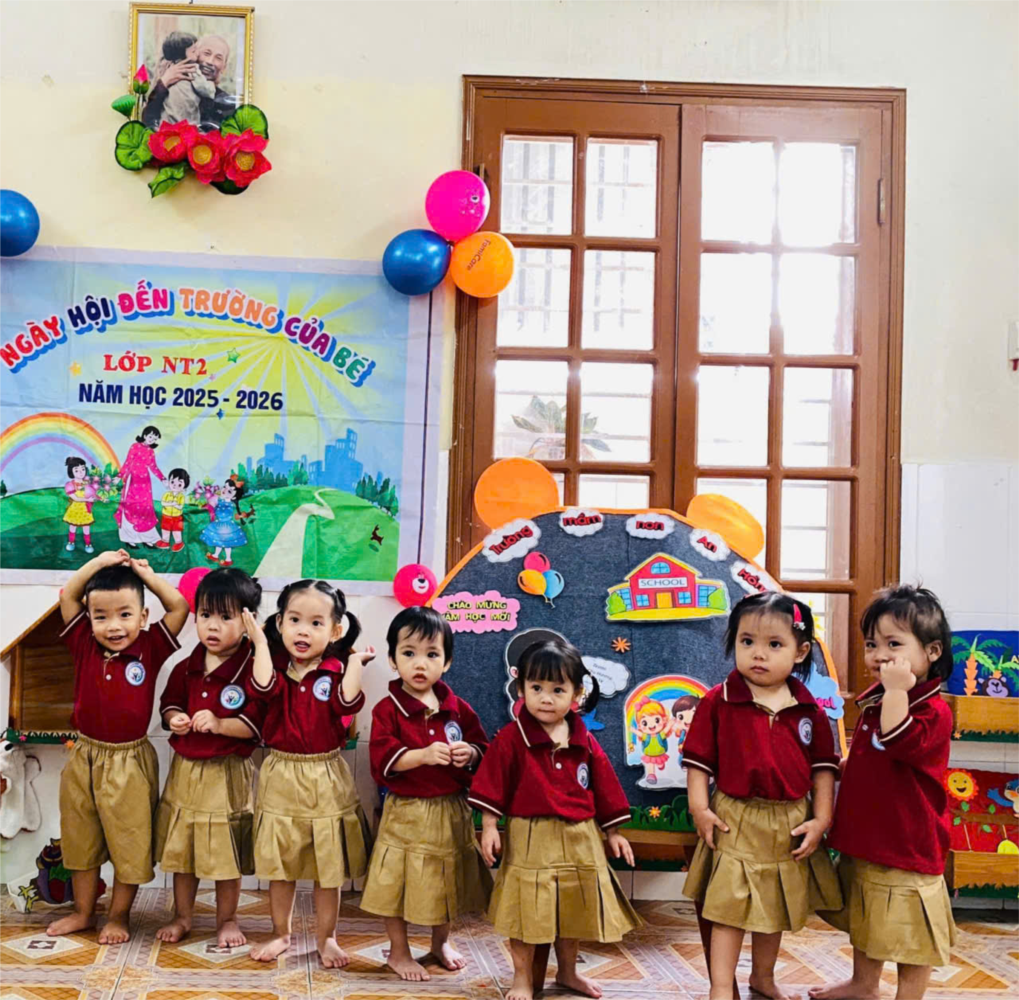 Từ sáng sớm, các bé đã được cha mẹ dẫn tới trường với những bộ trang phục gọn gàng và những chiếc ba lô xinh xắn. Trên khuôn mặt ngây thơ của các bé hiện rõ sự tò mò, hứng thú khi bước vào ngôi trường rực rỡ cờ hoa . Các cô giáo ân cần đón trẻ vào lớp với nụ cười trên môi . Bên cạnh đó các cô đã chuẩn bị chu đáo xây dựng môi trường lớp học hạnh phúc nhiều cây xanh, đầy đủ đồ dùng đồ chơi an toàn, sạch sẽ, nhiều hoạt động ý nghĩa chào mừng Quốc khánh 2/9 cho trẻ tham gia cùng cô và các bạn nhằm xây dựng niềm tự hào dân tộc cho trẻ ngay từ những năm đầu đời. Ngày tựu trường của các bé lớp Nhà trẻ 2 đã diễn ra thật trọn vẹn, mở ra một năm học tập mới đầy hứng khởi và ý nghĩa.