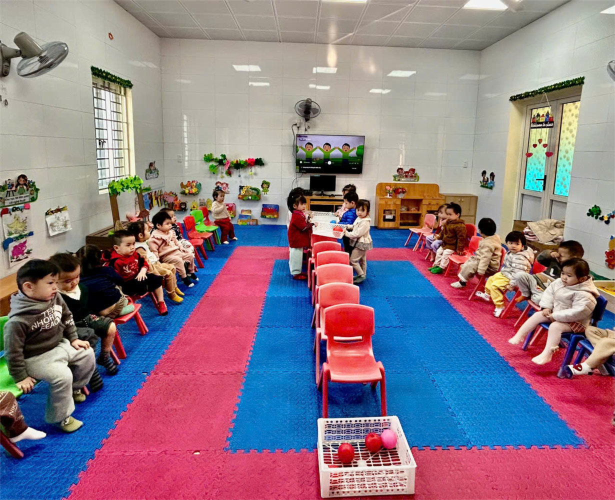 Tại lớp Nhà trẻ 3 – Trường Mầm non An Hồng, trò chơi vận động chuyền bóng qua ghế được tổ chức phù hợp với đặc điểm lứa tuổi của trẻ, vừa mang tính vui chơi vừa có ý nghĩa giáo dục rõ rệt. Khi tham gia trò chơi, các bé được vận động toàn thân thông qua các động tác cầm, chuyền và di chuyển bóng, từ đó giúp phát triển thể lực, tăng cường sự dẻo dai và khả năng phối hợp các nhóm cơ.