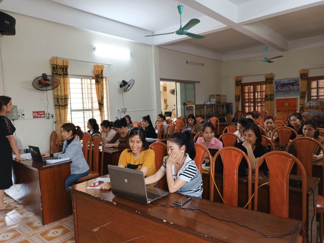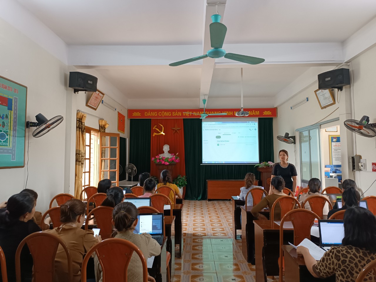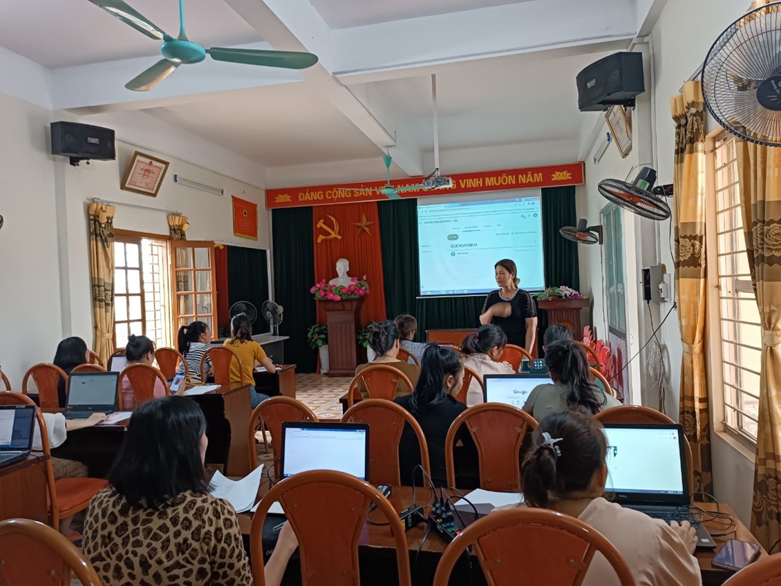 Hiện nay việc UDCNTT trong công tác chăm sóc giáo dục trẻ được thực hiện một cách mạnh mẽ, chính vì vậy những người giáo viên mầm non thường xuyên cập nhật những kiến thức cũng như kỹ năng sử dụng công nghệ và khai thác các nguồn tài liệu trên các trang mạng là điều rất quan trọng. Đối với giáo dục không chỉ giáo viên cần phải tiếp cận bên cạnh đó học sinh ngày từ câp học mầm non cung cận thực hành một số thao tác đơn gia thông qua các trò chơi tương tác để ôn luyện, làm quen kiến thức mới. Do vậy nagyf từ đầu năm học 2022-2023 Phòng GD&ĐT đa quán tâm bồi dưỡng rất nhieuf về công tác chuyển đổi số cho các trường, nhận nhiệm vụ đó trường Mn An Hồng cũng luôn quan tầm việc bồi dưỡng các kỹ năng thực hành cho giáo viên trong trường.