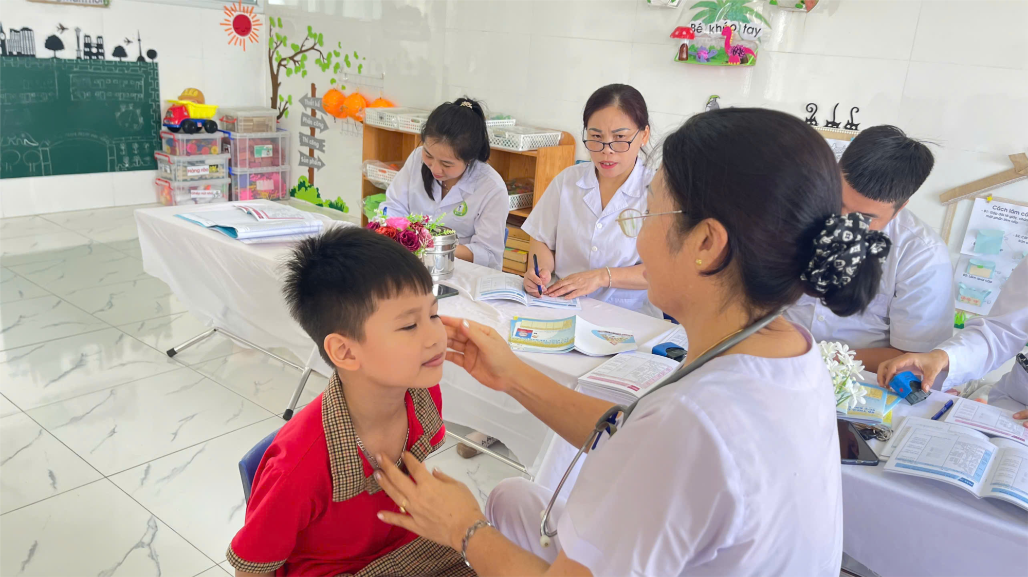 Khám sức khoẻ định kỳ cho trẻ là việc làm hết sức thiết thực và ý nghĩa thông qua việc khám sức khỏe định kỳ cho trẻ đã góp phần không nhỏ vào việc nâng cao nhận thức cho phụ huynh về ý thức phòng chống một số bệnh thường gặp ở lứa tuổi mầm non và cũng qua hoạt động này đã đem lại sự phấn khởi, tin tưởng trong các bậc phụ huynh về một môi trường giáo dục an toàn và thân thiện. Sau một thời gian làm việc nhiệt tình và trách nhiệm cao, 100% trẻ đã được khám sức khoẻ định kỳ.