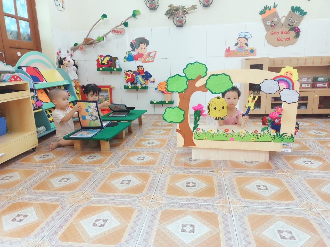 Bé chơi góc chơi động