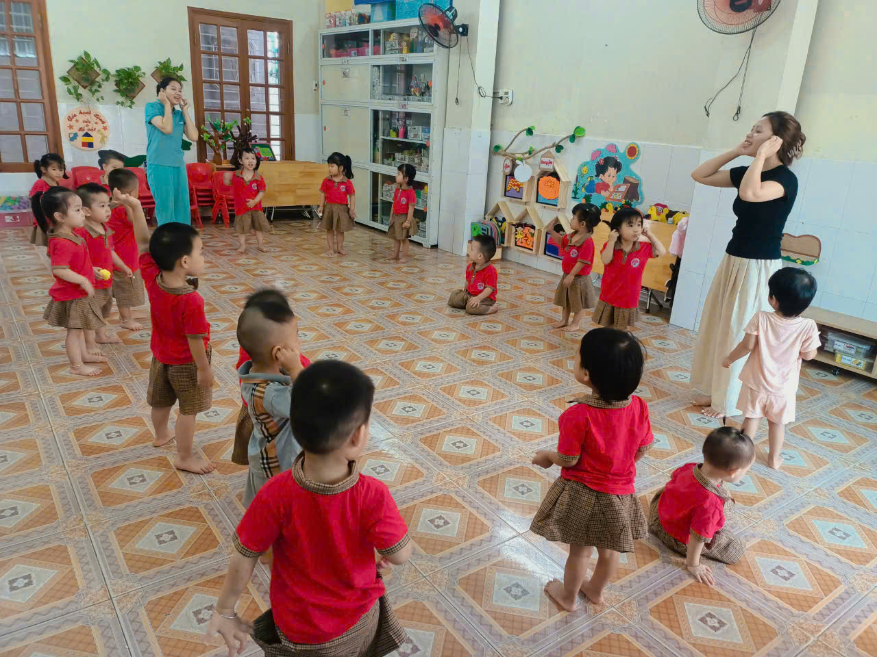 Xin kính mời quý phụ huynh cùng ngắm nhìn hình ảnh video tràn đầy năng lượng của cô và trò lớp trong giờ thể dục sáng