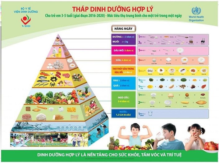Dưới đây là tháp dinh dưỡng cho trẻ 3-5 tuổi phụ huynh cần biết
