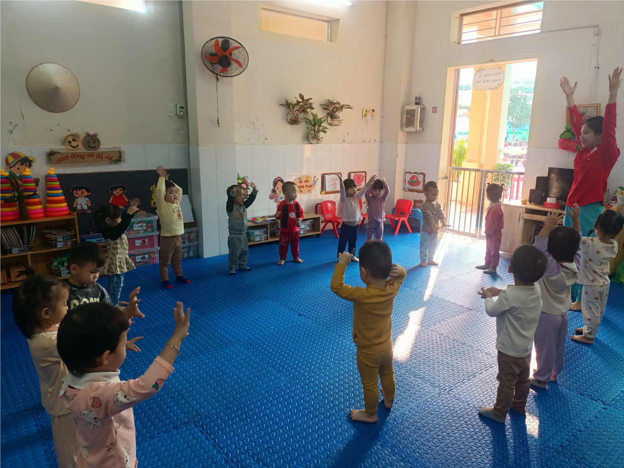 Sau đây là một số hình ảnh của buổi tập thể dục sáng của lớp nhà trẻ 1.