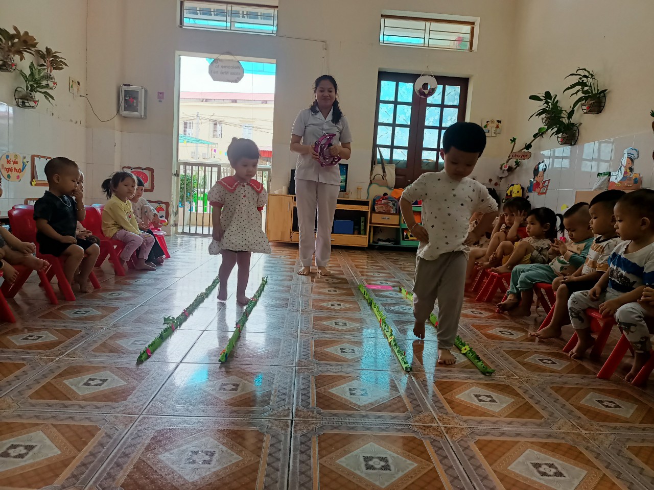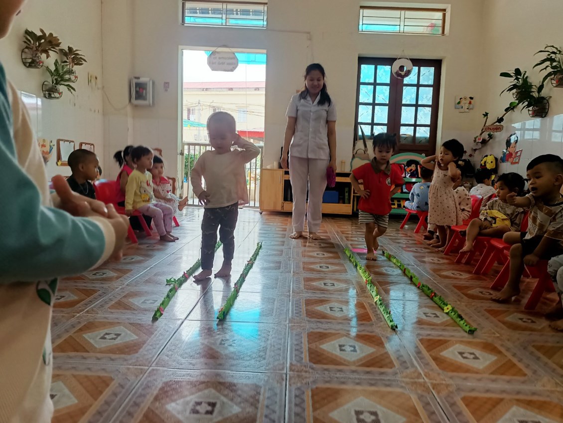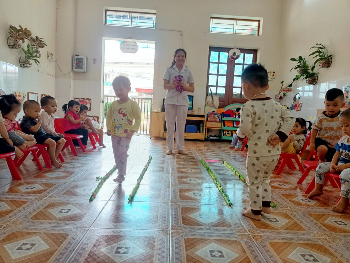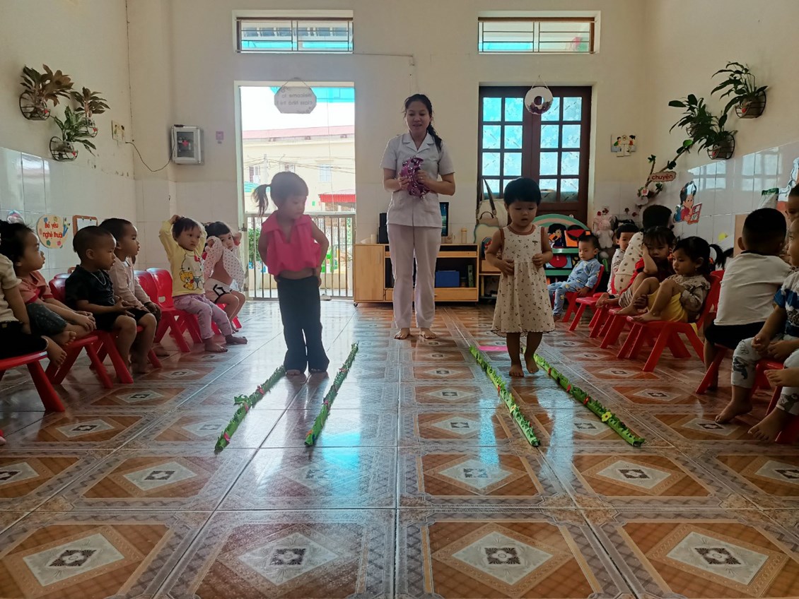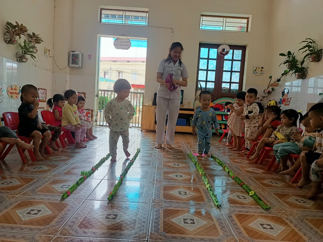 Hiểu được điều đó, các cô giáo lớp nhà trẻ 1 đã tổ chức cho trẻ tham gia với bài tập PTVĐ: Đi trong đường hẹp, nhằm giúp trẻ vận động một cách thành thạo và gây hứng thú giáo dục thể chất cho lứa tuổi nhà trẻ.