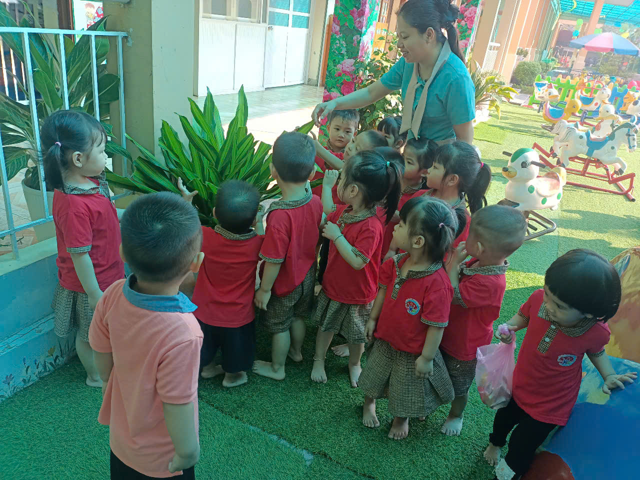 Giờ hoạt động ngoài trời của các bé lớp Nhà Trẻ 1 - MN An Hồng