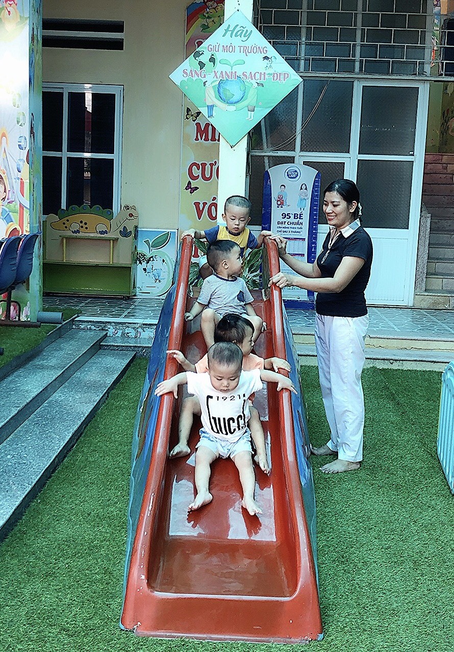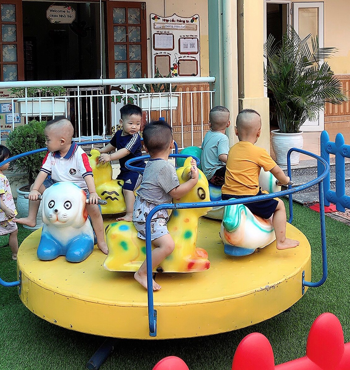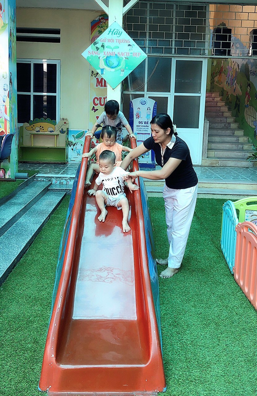Dưới đây là một số hình ảnh trẻ hoạt động ngoài trời của các bé lớp Nhà trẻ 2 trường mầm non An Hồng.