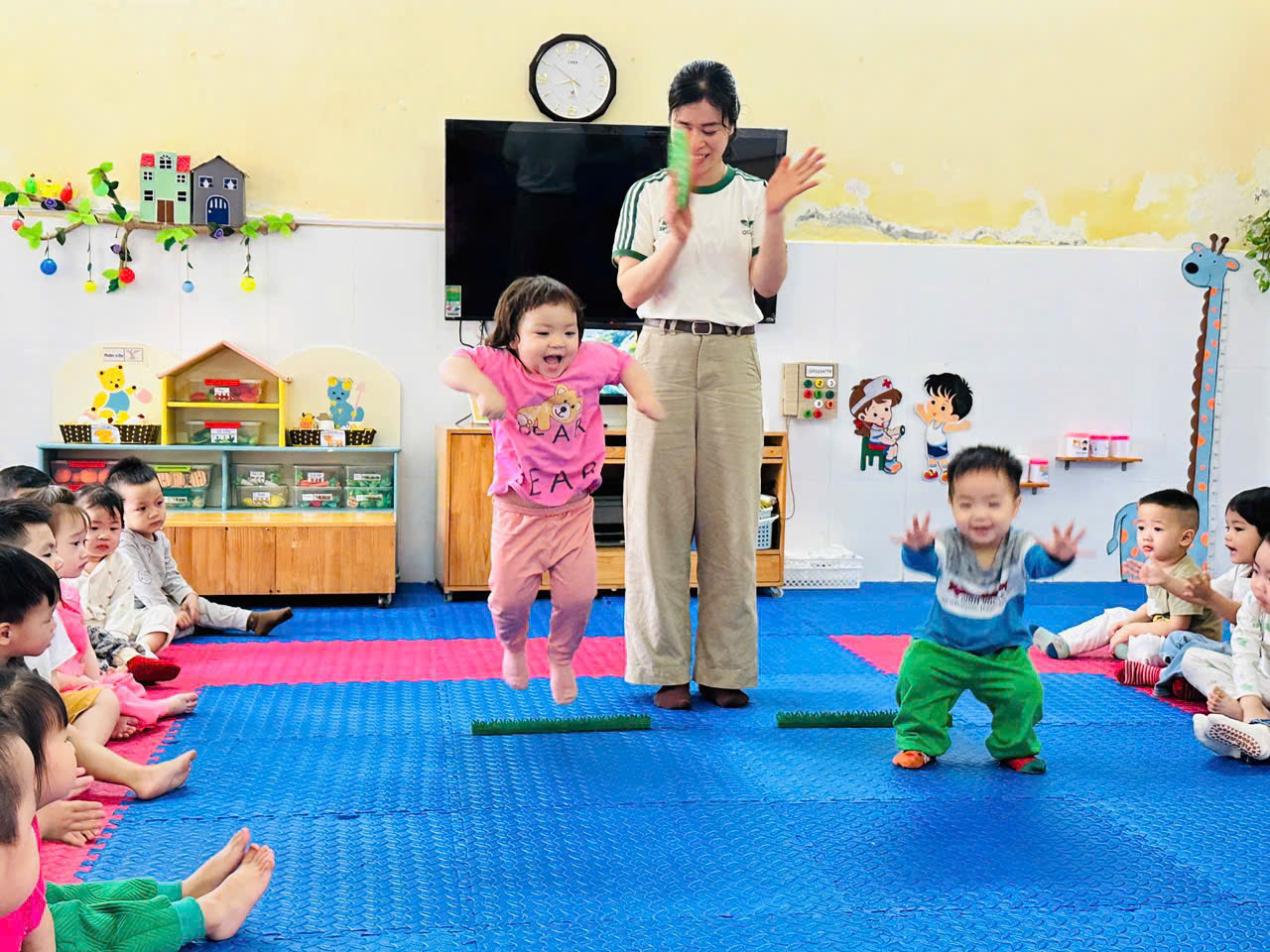 Giờ hoạt động thể chất của các bé lớp Nhà trẻ 3