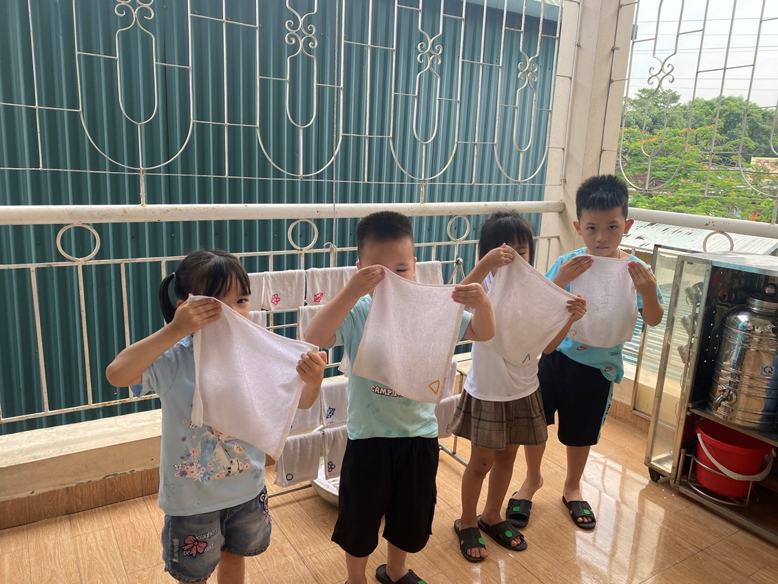 Khi bé đến trường, bé được các cô giáo hướng dẫn cách rửa tay, rửa mặt, cách giữ gìn vệ sinh thân thể, đồ dùng cá nhân... luôn gọn gàng sạch sẽ. Sau đây là một số hình ảnh các bé lớp MG4B5 trường Mầm non An Hồng rửa tay và rửa mặt hàng ngày. Các bậc phụ huynh hãy cũng kết hợp với các cô để tập cho trẻ thói quen tự vệ sinh cá nhân đặc biệt hướng dẫn trẻ tự rửa tay rửa mặt nhé.