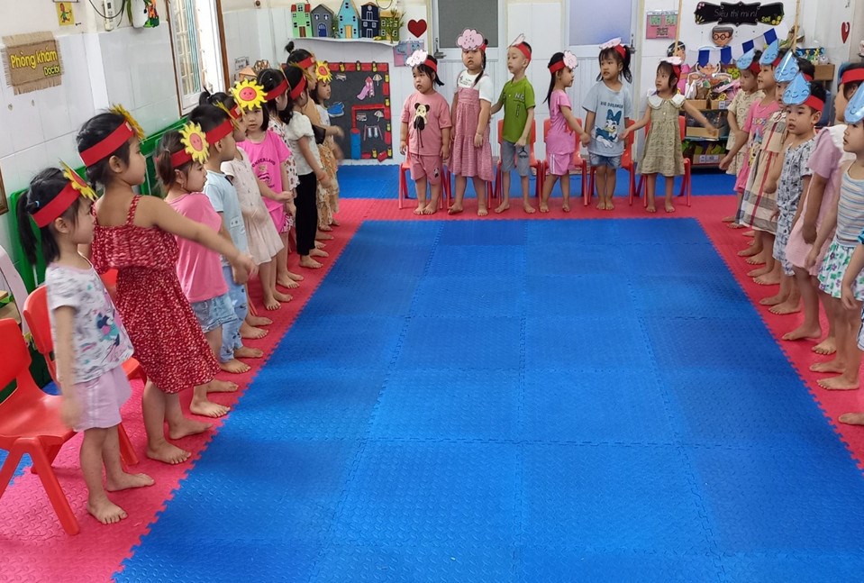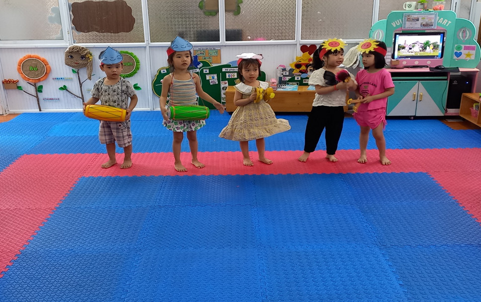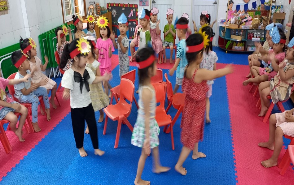 Ảnh: Bé tham gia chơi trò chơi âm nhạc cùng các bạn