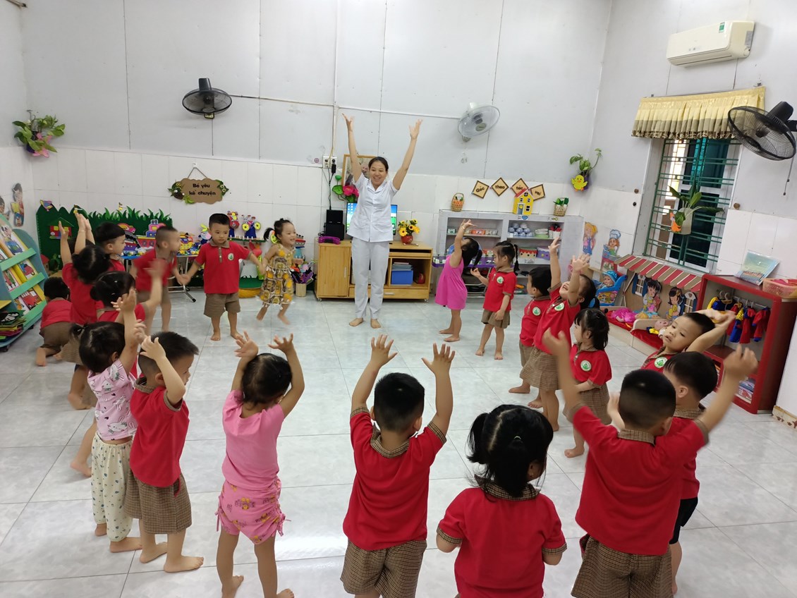 Giờ thể dục sáng của trẻ Nhà Trẻ - Trường MN An Hồng