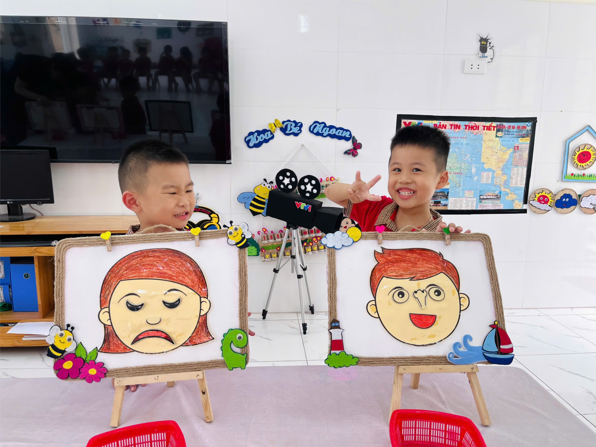 Trò chơi "Khuôn mặt vui nhộn" là một hoạt động thú vị và giúp trẻ mầm non phát triển kỹ năng nhận diện, tư duy và sáng tạo. Trò chơi này thường bao gồm một khuôn mặt cơ bản (trống) và các bộ phận rời như mắt, mũi, miệng, tai,... mà trẻ sẽ gắn vào đúng vị trí. Với trò chơi này các cô đã chuẩn bị :
