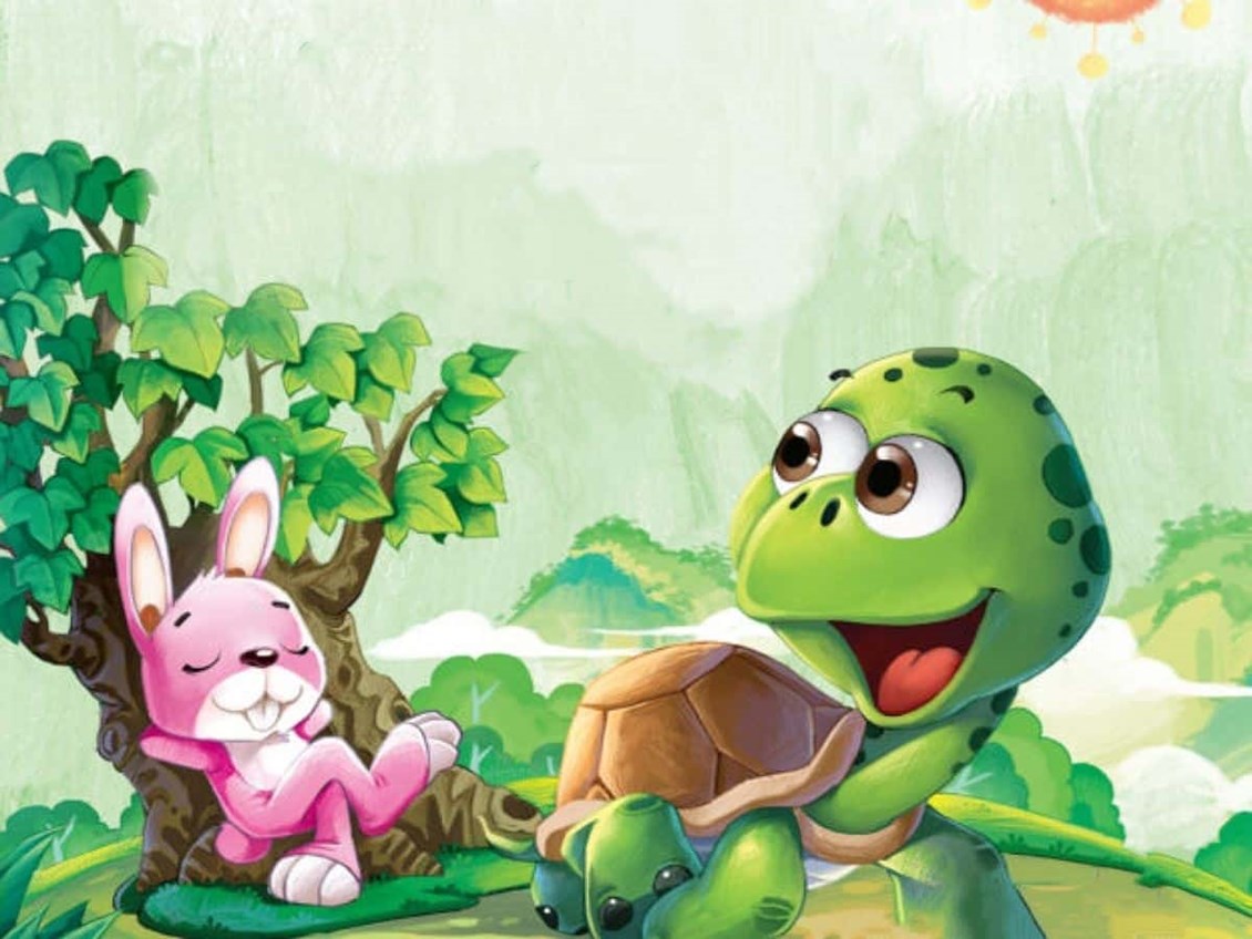 Một buổi sáng trời mát mẻ, bên bờ hồ trong xanh, Rùa đang hì hục tập chạy. Thỏ đi qua, nhìn thấy vậy thì phá lên cười, nhạo báng :