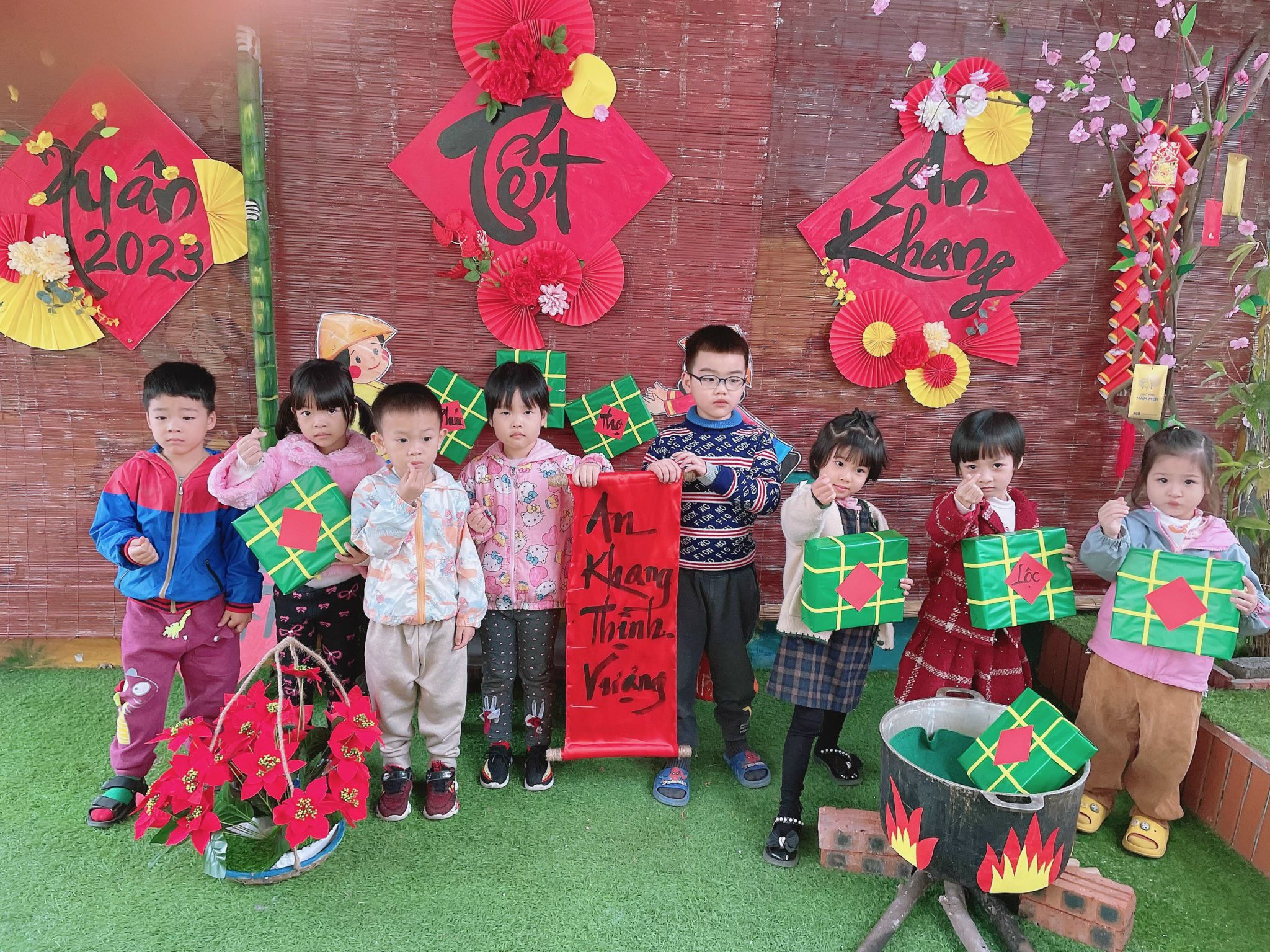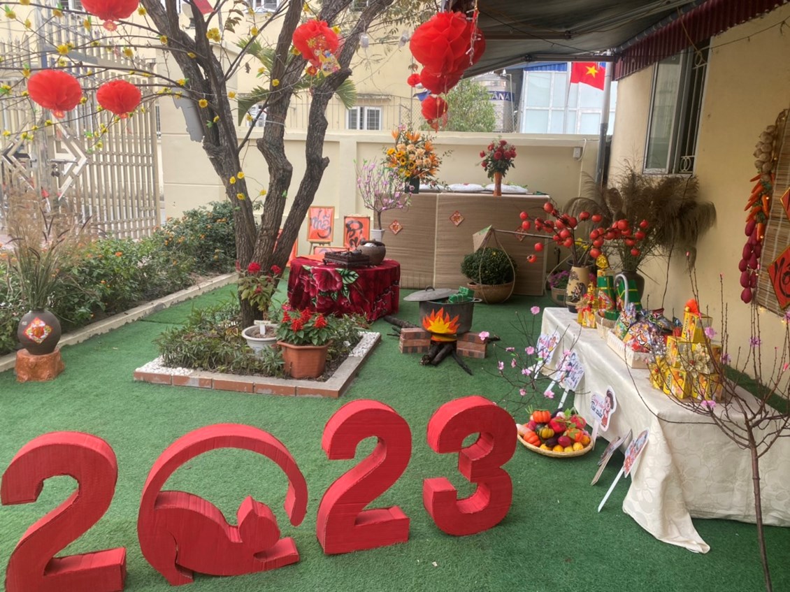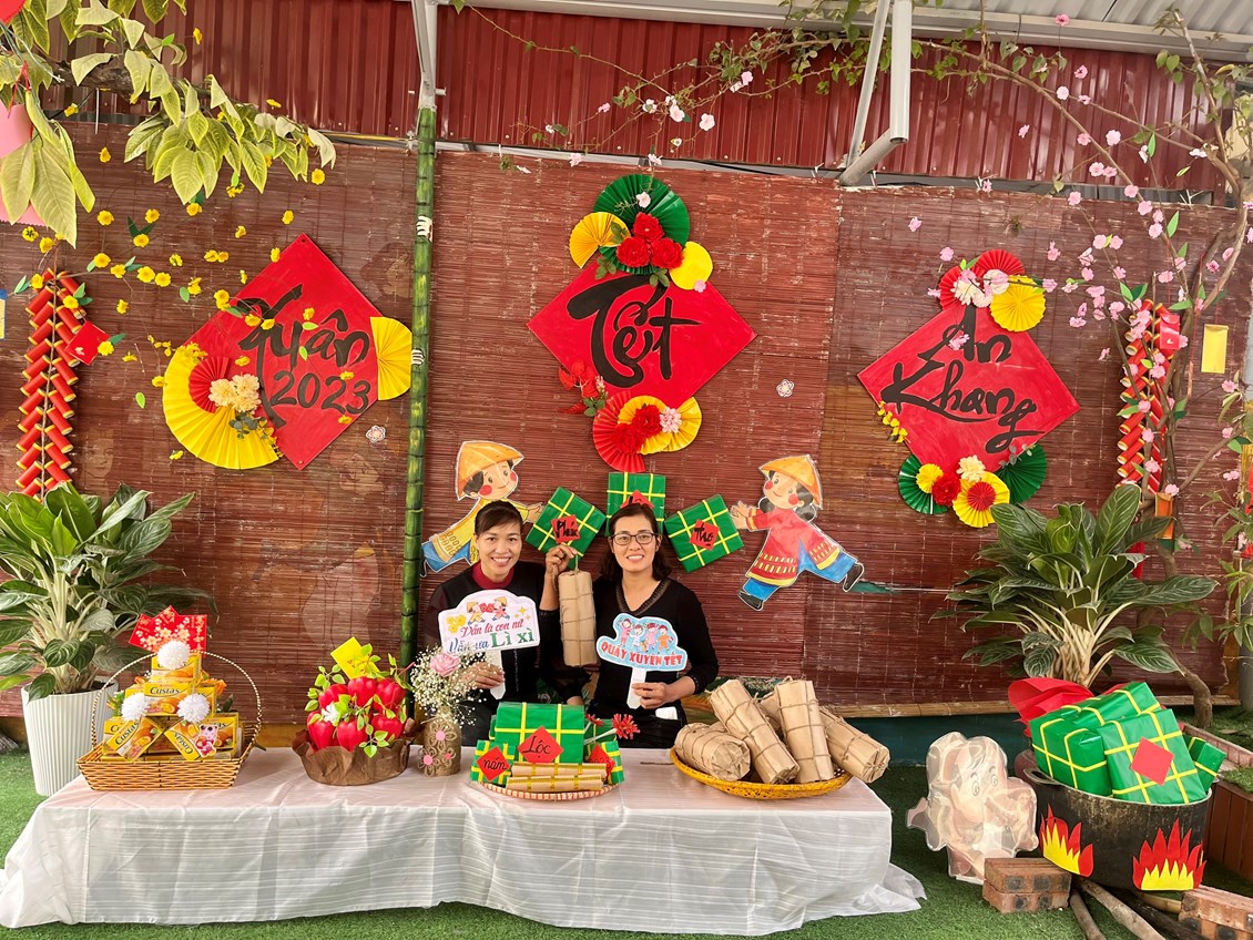 Để giúp trẻ mầm non hiểu rõ về ý nghĩa của việc gói bánh chưng trong ngày tết cổ truyền của dân tộc Việt Nam chúng ta. Một số nhóm lớp đã tổ chức hoạt động trải nghiệm cho trẻ như xây dựng môi trường , gói bánh chưng. Hay một số hoạt động ý nghĩa như: Chơi các trò chơi dân gian, bán hàng tết, múa hát mừng xuân, trang trí cành đào, cành mai….