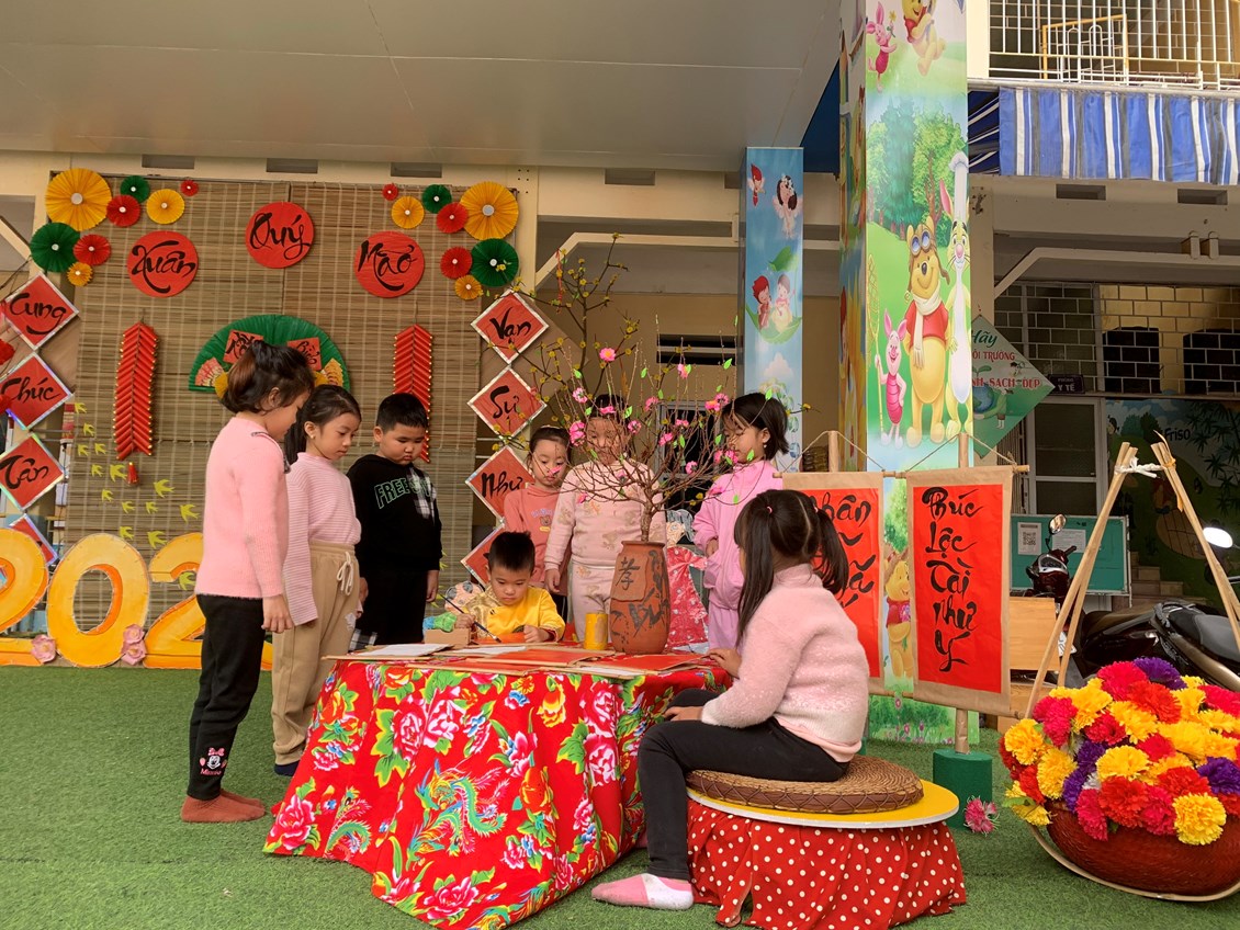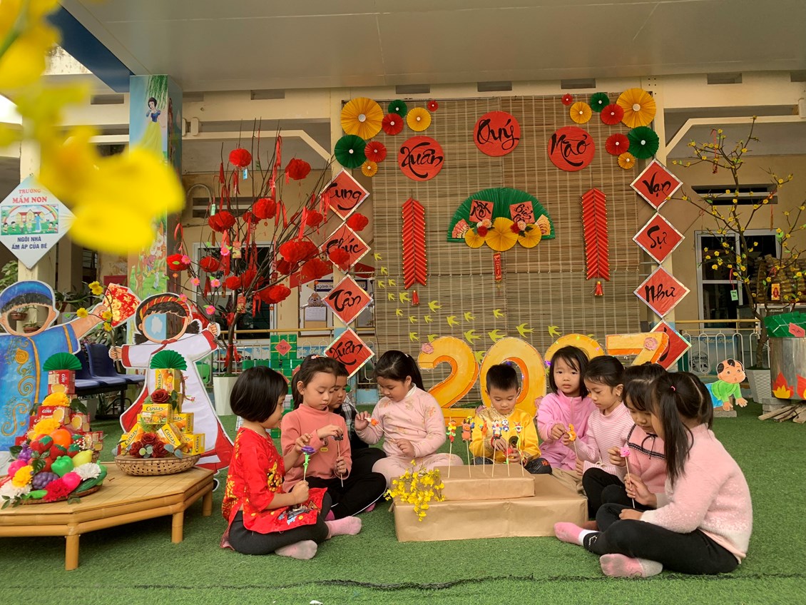 Với chủ đề «Xuân yêu thương, tết xum vầy» thật gần gũi đối với trẻ mầm non. Các cô giáo đã mang đến cho trẻ những hoạt động thật ý nghĩa với không khí ấm áp tràn đầy sắc xuân. Thông qua các hoạt động giúp trẻ tự tin giao tiếp, phát triển các kỹ năng, mạnh dạn tự tin hơn trong các hoạt động.