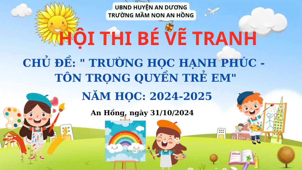 Thực hiện công văn hướng dẫn số 279/PGDĐT- GDMN, ngày 04/09/2024 của Phòng Giáo dục và Đào tạo về việc hướng dẫn thực hiện nhiệm vụ giáo dục mầm non năm học 2024-2025; Công văn số 307/PGDĐT ngày 19 tháng 09 năm 2024 của Phòng GDDT huyện An Dương về việc thực hiện nhiệm vụ trọng tâm năm học 2024-2025; Kế hoạch Số: 84 /KH-PGDĐT ngày 28/10/2024 của Phòng GDS&ĐT về việc Tổ chức Hội thi vẽ tranh về chủ đề “Trường học hạnh phúc -Tôn trọng quyền trẻ em” dành cho trẻ em mẫu giáo