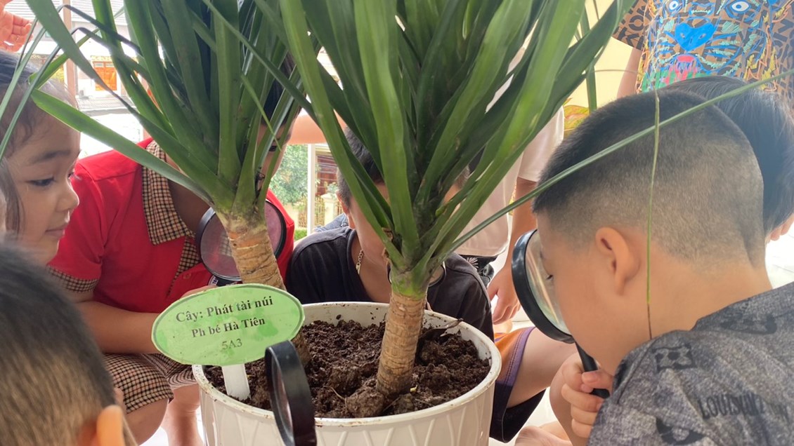 - Bạn ốc này từ nhà tớ tới đấy vì sáng nay bà tớ mang cây này tặng lớp chúng mình mà...