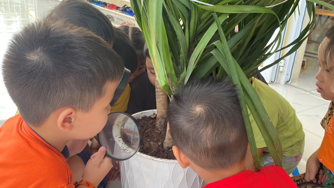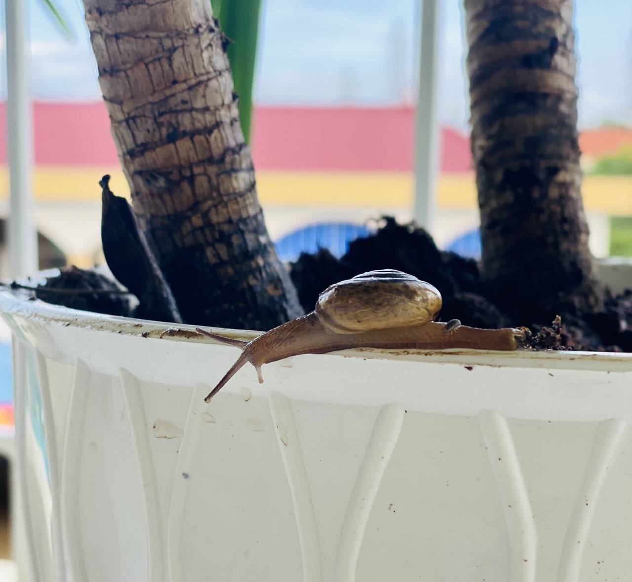 🌳🌳🌳 A... này bạn ơi! Một chú ốc 🐌 nhỏ xinh đang bò trong chậu cây trước cửa lớp….🐌🍂🍃🍃