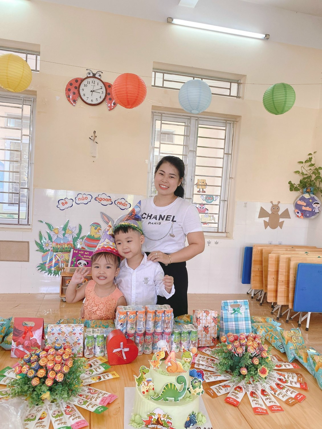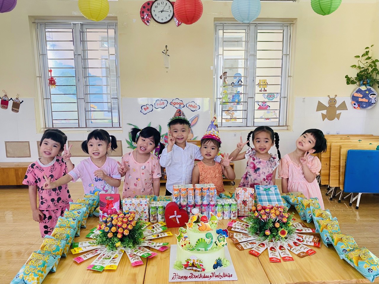 Một buổi sinh nhật vui và ý nghĩa với bé không chỉ là việc chuẩn bị bánh kẹo, hoa quả mà còn là việc tạo cho trẻ một không gian với những hình ảnh, màu sắc thật lung linh, rực rỡ. Điều này các cô giáo ở trường mầm non luôn sẵn sàng giúp gia đình để các bé có được cảm giác yêu thương, ấm áp trong ngày đặc biệt của chính mình. Bên cạnh đó, các cô giáo còn cùng các bạn nhỏ ở lớp biểu diễn các tiết mục văn nghệ chúc mừng sinh nhật, tổ chức các trò chơi vui nhộn giúp ngày sinh nhật của bé vui vẻ và ý nghĩa.