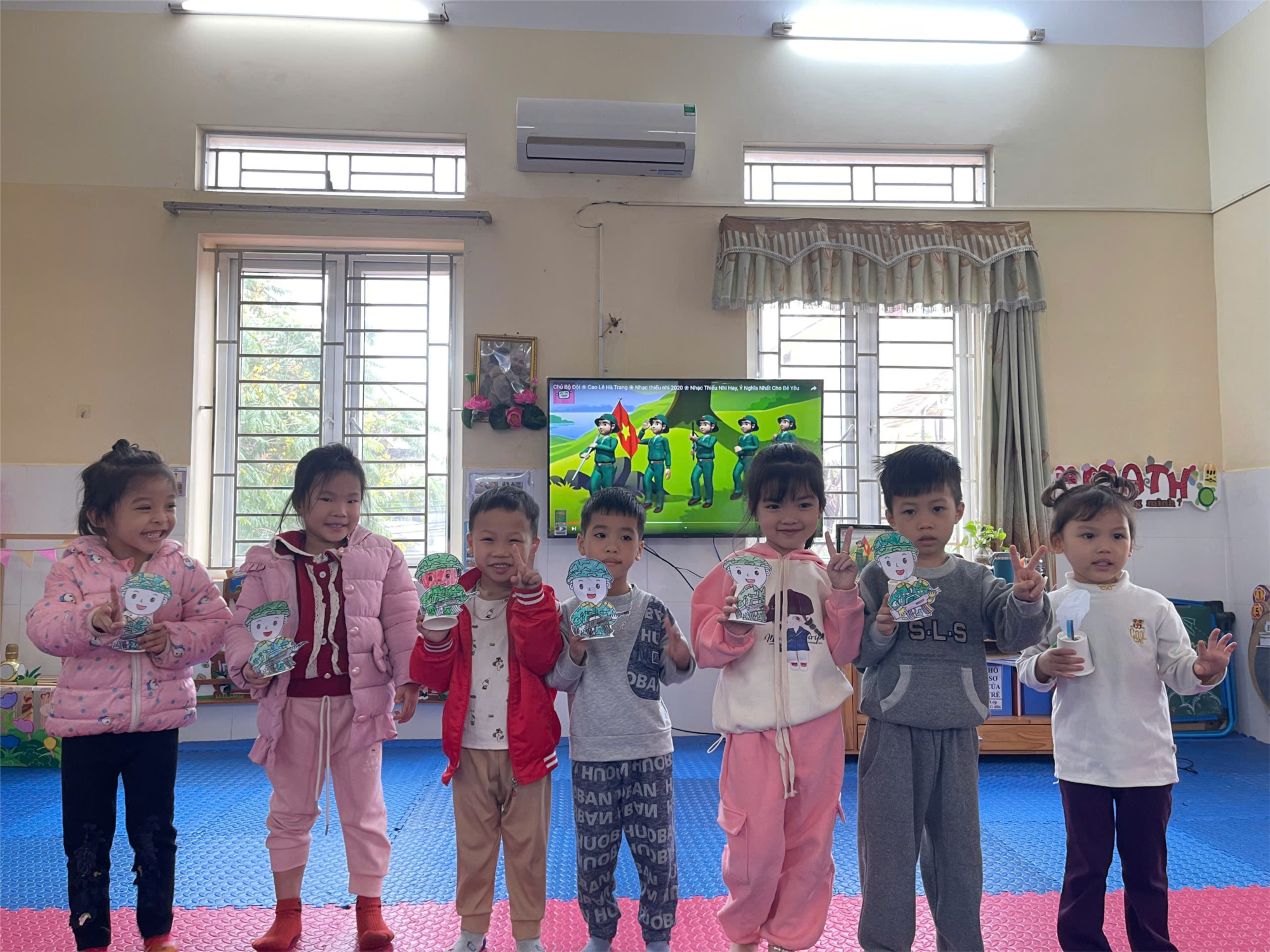 Không chỉ dừng lại ở việc tạo hình, trẻ còn được cô giáo chia sẻ những câu chuyện ý nghĩa về công việc của các chú bộ đội. Qua đó, trẻ hiểu thêm về sự gian khổ nhưng cao cả của những người lính nơi biên cương, hải đảo. Hoạt động này góp phần khơi dậy trong lòng trẻ niềm tự hào và tình yêu đối với đất nước.